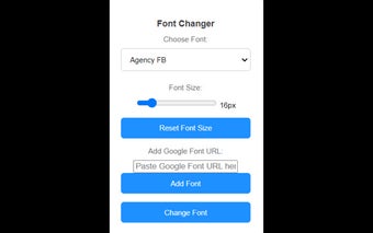 Font Changer เป็นส่วนขยาย Chrome ฟรีที่ออกแบบมาเพื่อปรับปรุงประสบการณ์การท่องเว็บของคุณโดยอนุญาตให้ผู้ใช้เปลี่ยนฟอนต์และขนาดของข้อความในเว็บไซต์ใดก็ได้ เครื่องมือง่ายๆ แต่มีประสิทธิภาพนี้จะรักษาการตั้งค่าฟอนต์ที่เลือกไว้ในทุกแท็บโดยอัตโนมัติเมื่อเปิดแท็บใหม่ ด้วยอินเทอร์เฟซที่ใช้งานง่าย มันตอบสนองต่อผู้ที่ชื่นชอบประสบการณ์เว็บที่ปรับแต่งได้ ทำให้มั่นใจว่าข้อความจะแสดงในสไตล์ที่พวกเขาเลือก